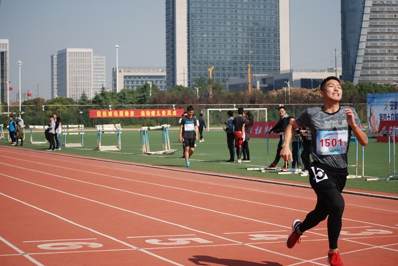 生物技术专业2017级仇志锌同学在男子跳高比赛中勇夺第一