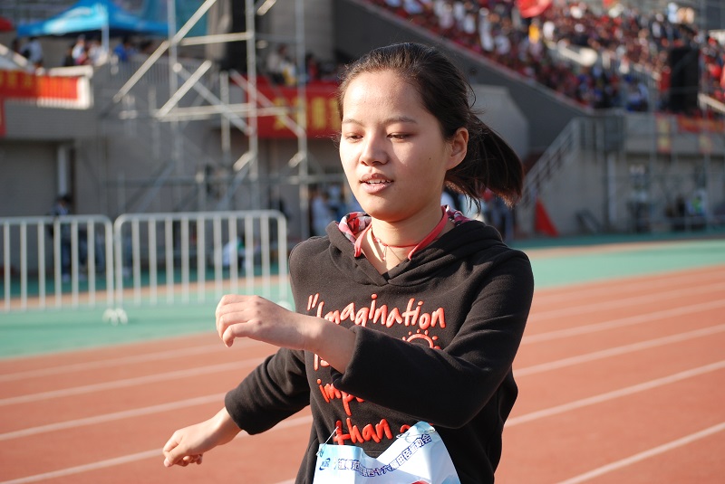 生物技术专业2016级陈荣荣同学在女子800米中坚持不懈,争分夺秒