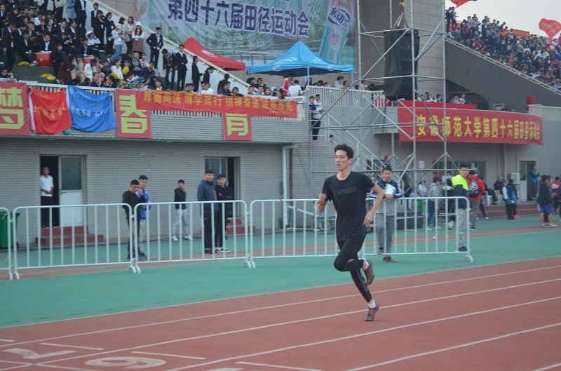 生物科学(中外合作)专业2017级沐璟玮同学在男子100米中一马当先