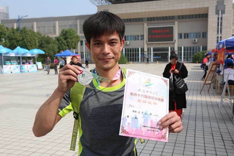卢存龙老师在男子1500米比赛中争分夺秒,斩获第二名的优秀成绩
