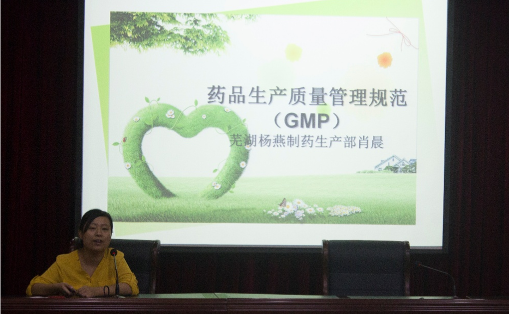 “药品生产质量管理规范”即GMP(Good Manufacture Practice of Medical Products),是药品质量的根本保证。肖晨总监对GMP作了系统解读,她从GMP的内涵、实施意义、基本要求等几方面全面地阐述了GMP规范在药物生产领域中的重要性。药品的生产是遵循“计划--实施--检察监督”的环形操作过程,每一步都不容忽视,环环相扣,谨慎细致。杨燕制药有限公司严格按照GMP规范的要求,谨承“人、机、料、法、环”五位一体的生产模式有序运作,即工作人员、机器设备、药物原料、操作方法、工作环境共五个方面都必须严格遵照GMP要求。整场报告思路清晰、内容充实、图文并茂,对GMP规范作了透彻解析。通过解读,到会的师生充分认识到“药品生产管理规范GMP”的必要性和重要性。