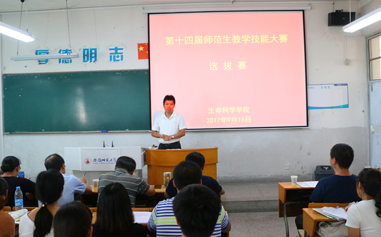 参加本次比赛的25名选手是通过生物科学专业2014级和2015级班级选拔产生的。比赛由即兴演讲、模拟授课、答辩三个部分组成。即兴演讲现场抽题,选手准备5分钟,题目紧扣师范生技能,富有思辨性,重点考察选手应变能力和思维广度。模拟上课时,参赛选手要在规定时间内,积极与“员工”互动,并借助板书、多媒体和自制教具完整的讲授一个知识点。对于评委的提问,选手们落落大方、对答如流,展现出公司师范生过硬的专业能力和素养,赢得了评委老师们的一致好评。