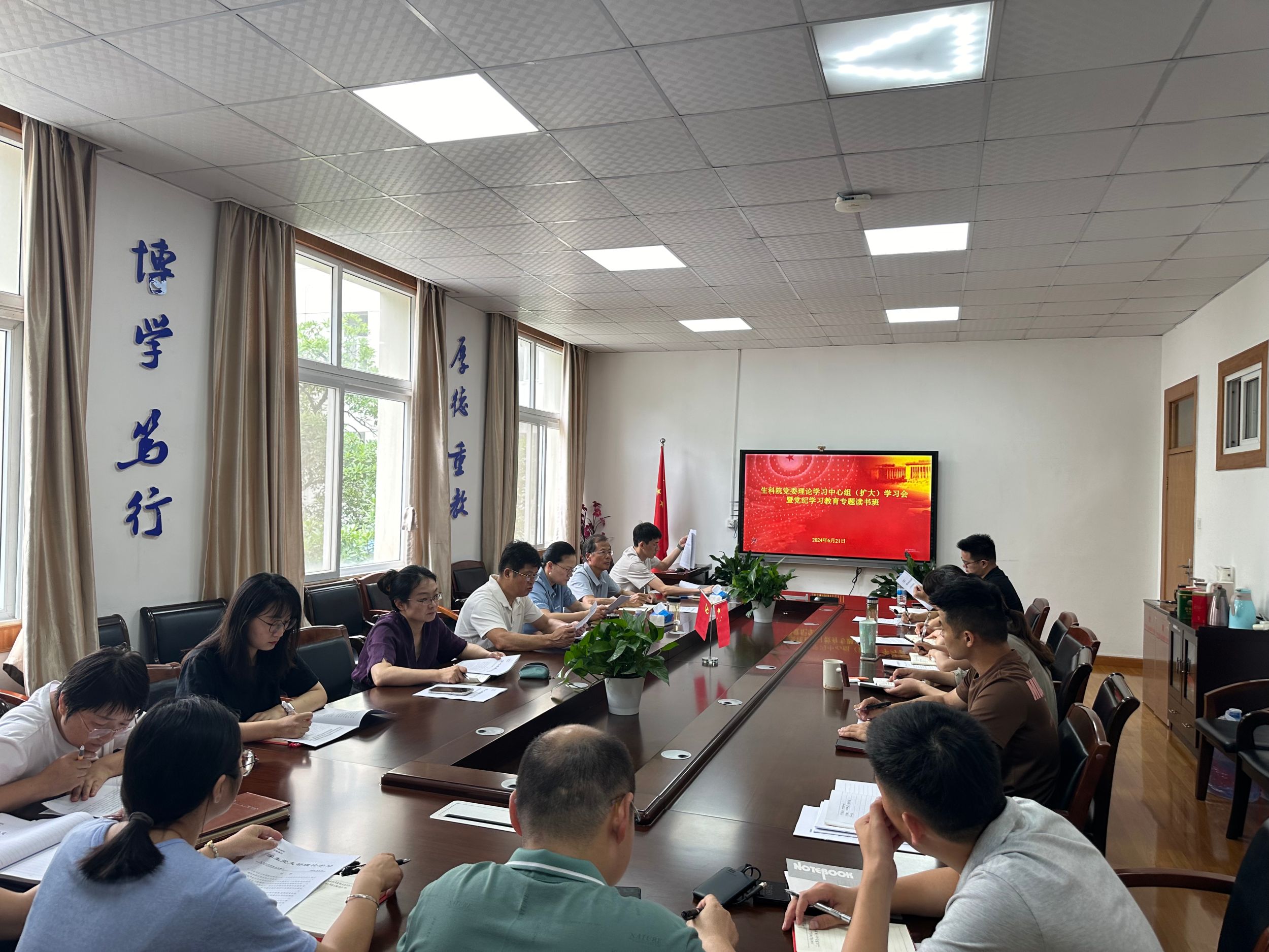 6月21日上午,生科院召开党委理论中心组(扩大)学习会暨新一期党纪学习教育专题读书班。公司党委领导班子成员、全体党支部书记及全体辅导员参会。