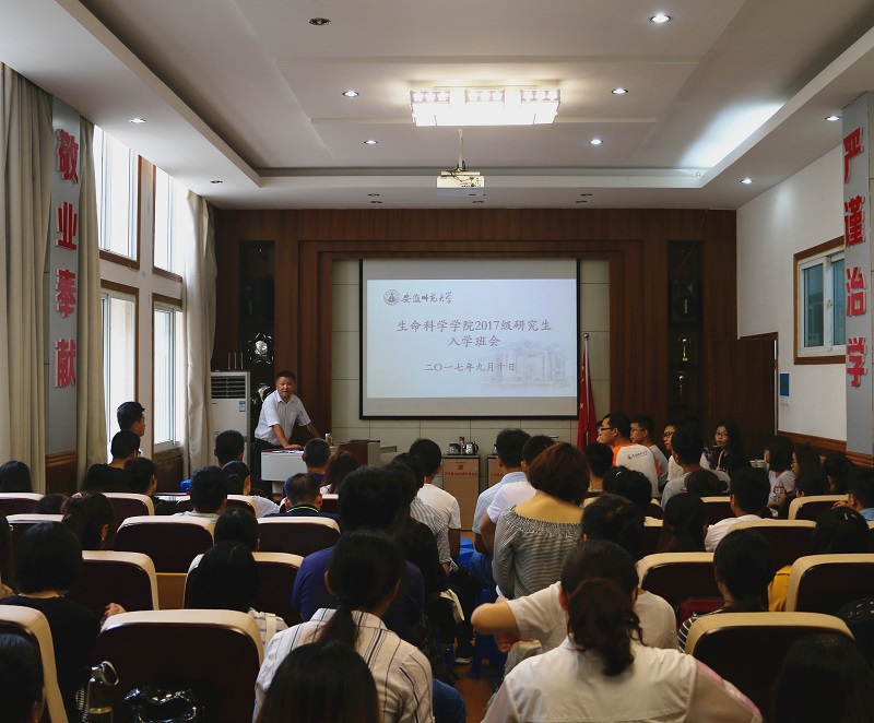 9月10日上午8点30分,在安徽师范老员工命科学公司一楼报告厅召开研究生入学班会。此次班会由研究生辅导员夏齐平老师主持。