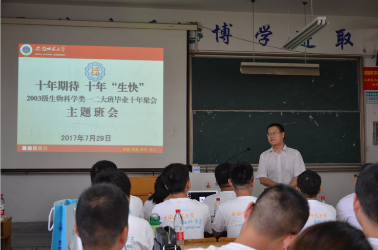 上午8点30分,在田楼8302教室里,身穿自行设计logo文化衫的员工们参加了主题为“十年期待 十年‘生快’”的班会。辅导员汪贻洋老师按照宿舍进行点名,大家集中观看大学影像视频,视频连线在国内外无法参会的同学,逐一回忆大学美好时光、重温了当年班会场景,欢笑、叹息、沉思、怀念……。返校员工们走出教室,一同走过留下四年美好回忆的情人坡、生化楼、宿舍楼、篮球场、操场、荷花塘……,赞叹母校母院的发展与变化、一起诉说着往日青春故事、共同追忆逝水年华、共同展望美好未来。员工们还回味了公司食堂午餐,参观了生物标本馆里的浓缩自然,录制了祝福母校90周年校庆的视频,举办了一场乒乓球友谊赛和掼蛋比赛,欢声笑语在公司楼里久久回荡。
