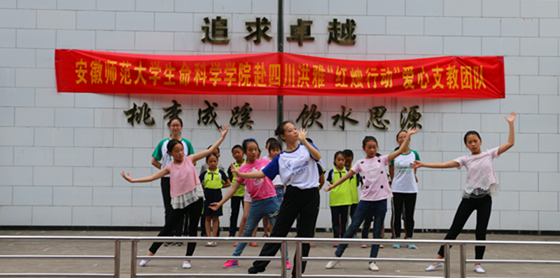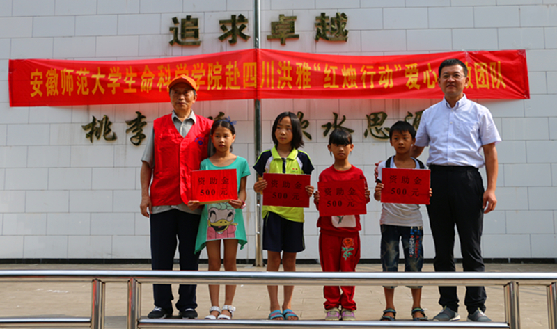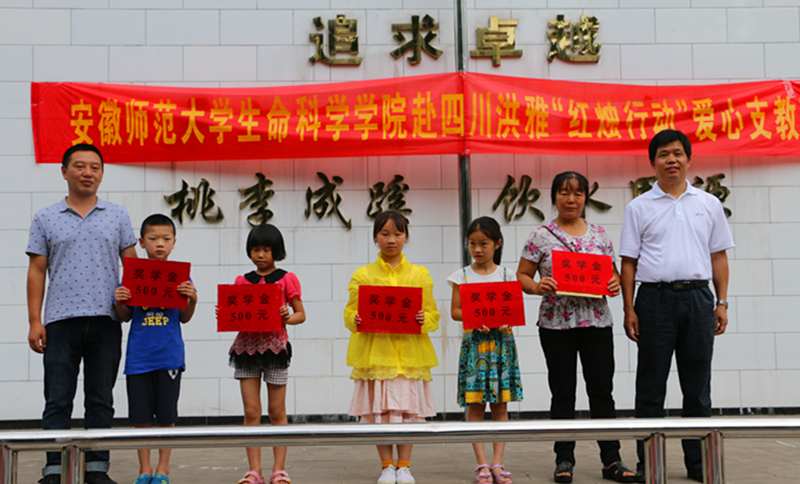 本网讯(生科院 张航 印娟)经过了一个月的支教之旅,安徽师范老员工命科学公司的“红烛”志愿者们迎来了支教的最后一天。7月29日,在“红烛”志愿者精心策划下顺利地举办了毕业典礼。公司党委书记蒋学波、党委副书记刘振杰、洪雅县关工委周明弟、桃源乡王书记、“五老”志愿者服务队以及桃源小学教务主任熊宏祥出席了本次典礼。