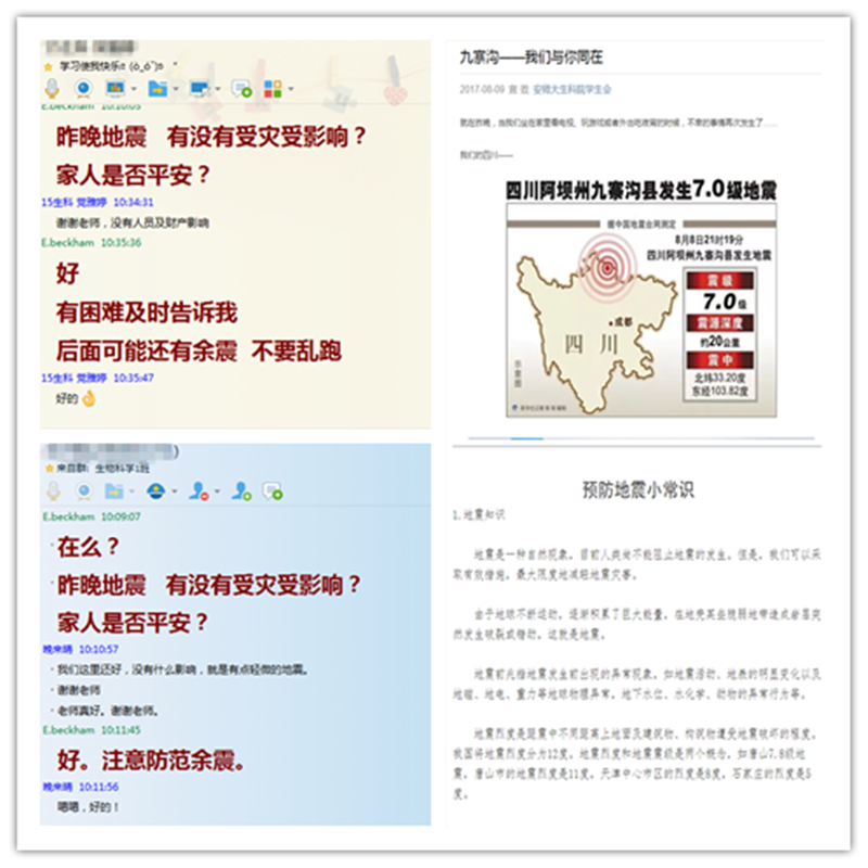 回访期间,四川省阿坝州九寨沟县发生7.0级地震。公司领导第一时间组织辅导员联系四川及周边省市可能受灾的员工。询问受灾情况,了解家中困难。员工纷纷发来报平安的信息,表示家人安全,感谢公司关心。