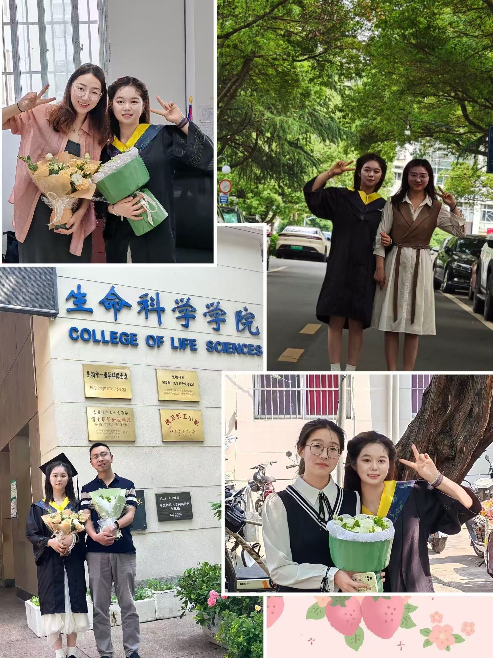 毕业生们奔向老师们的办公室,“抓”老师合照成了常见的场景。拍摄现场,毕业生的欢呼声久久回荡耳畔,身穿学士服、硕士服的毕业生对着镜头,或三五成群微笑合影,或对着镜头高喊“毕业快乐”,一张张朝气蓬勃的笑脸在这一刻定格,封存了美好的瞬间。