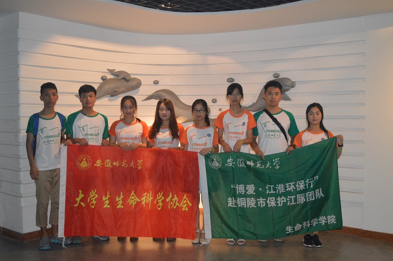 本网讯 (李茹 郝一丹 何馗馗/文 汪明 吴珊珊/图) 青春献礼十九大,志愿守护长江豚。为进一步宣传爱豚护豚理念,普及环保知识,践行环保理念,安徽师范老员工命科学协会保护江豚实践团队秉持“拥抱铜都青山绿水,守护江豚微笑相随”的信念,6月27日-7月7日,团队成员在铜陵等地开展以“你好,江豚”为主题的暑期社会实践活动。