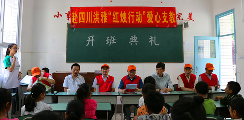 7月9日,赴四川洪雅“红烛行动”爱心支教团队隆重举行开班典礼。洪雅县关工委常务副主任周明弟、桃源乡王乡长、洪雅县“五老”志愿者服务队、生科院团委副书记王志老师以及支教团全体队员出席了典礼,典礼由队员代表陈兵主持。