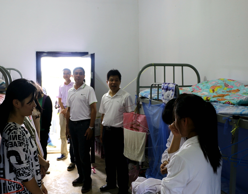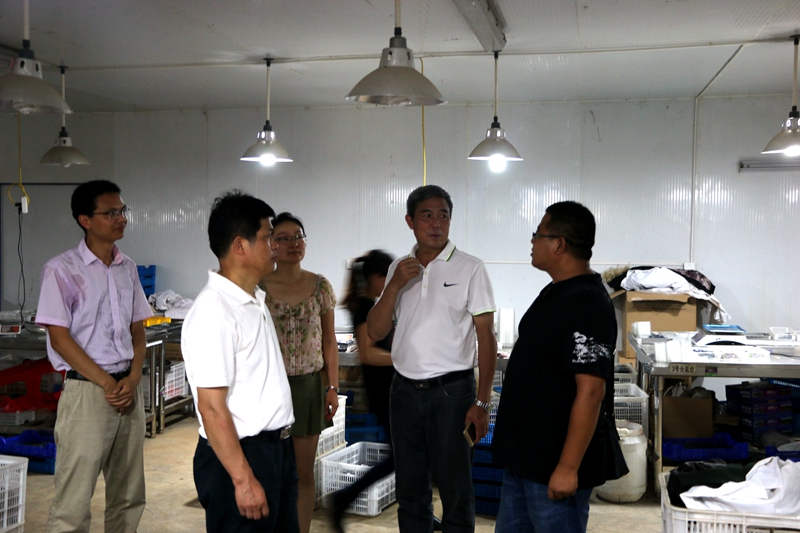 在徽王蓝莓有限公司相关负责人的陪同下,朱家存、蒋学波一行首先赴蓝莓种植园、加工车间看望了正在进行实践的同学们,亲自体验了种植、采摘蓝莓的过程,观摩了蓝莓加工的流程,并与实践团队全体师生进行了亲切的交谈。在交谈中,团队队员纷纷向领导老师们汇报了自己的实践感悟,有的因为改变而成长,有的抒发了浓浓的团队友谊情,还有的针对实践活动内容进行了深刻总结。