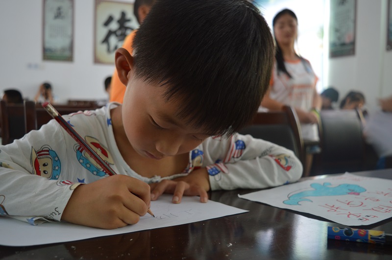 下午,队员们伴着细雨来到钱湾村。此次活动分为三个部分。首先,队员们播放了一则卡通视频,向孩子们介绍了江豚现存的背景,随后宣讲员向小朋友们普及了江豚的体型、生活习性和生存现状等相关知识,从造成江豚濒危的三大原因讲到保护江豚的种种方法。接着,队员们向小朋友们表演了事先准备好的小话剧,孩子们看得津津有味,剧中小江豚的遭遇牵动着他们的情绪,时而笑得前仰后合,时而发出担心的唏嘘声。话剧表演结束后,队员们给小朋友分发纸笔文具,让每个人画出自己心目中的江豚。孩子们的热情被瞬间点燃,都纷纷发挥起了自己的想象力,积极参与到绘画活动中来。