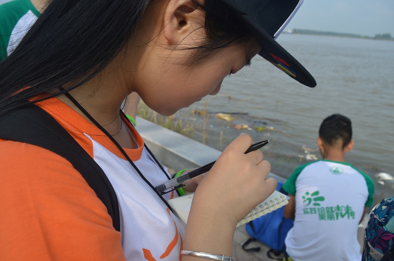 实践队员们顶着烈日,徒步毅行前往长江铜陵段,对此河段多点位长江水质进行了采样检测与记录。沿江毅行途中,实践队员们看到江水近岸处堆积了很多涨水时残留的垃圾。队员们随即自发对江水进行清漂并将垃圾分类放入垃圾箱。下午,队员们在客运渡口对沿江居民展开了关于江豚生存现状的问卷调查,了解市民对江豚及其保护措施的认知程度,为后期以“治理长江,呵护江豚”为主题的环保理念宣讲做好准备。