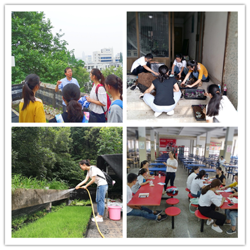 首先,队长陈含笑在团队内召开了集体会议,进行了成员间的明确分工,并集中进行了安全培训。接下来,成员们分批在m88官网的屋顶与后山电镜楼进行实地测量和花卉培育。指导教师涂传林老师与队员们探讨花卉繁殖、园艺设计的相关知识后,队员们对屋顶绿化的意义有了更深刻的体会——“会呼吸的屋顶,为城市添抹绿”。最后,团队成员们集思广益,确定了m88官网屋顶布置的最终设计图纸。