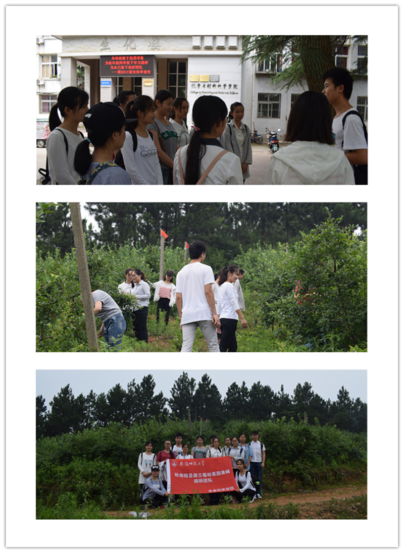 本网讯(生科院 邱彦清)首夏清和,芳草未歇。为观测蓝莓的生长情况与周围环境之间的关系,探究果蝇生长繁殖情况与蓝莓生长之间的相互作用,帮助果园增产。安徽师范老员工命科学公司赴南陵县徽王莓岭果园果蝇调研团队于6月29日前往徽王莓岭果园开展了第一次调研活动。
