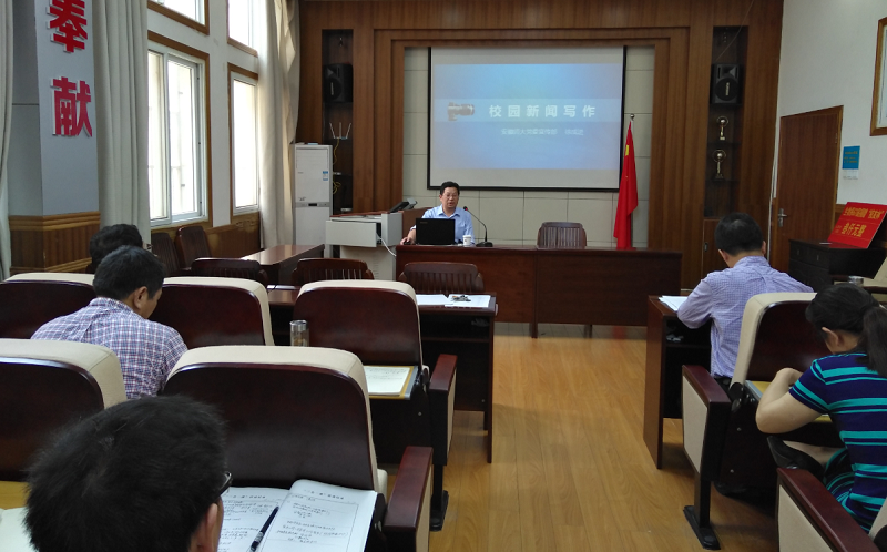 徐成进从新闻的含义、新闻的结构、写法和新闻写什么三个方面向学员们介绍了如何写校园新闻稿。他指出,优秀新闻稿标准是豹头肚凤尾,即灵活鲜明的标题、引人入胜的导语、深化题旨的主体、有的放矢的背景和恰到好处的结尾。他强调,要学会在日常工作、文件计划、会议内容、总结材料、阅读新闻、观察思考和深入采访中找新闻。结合案例,徐成进还分析了新闻写作中常见的文不对题、要素缺失、堆积材料、滥发议论、语句错误等问题。