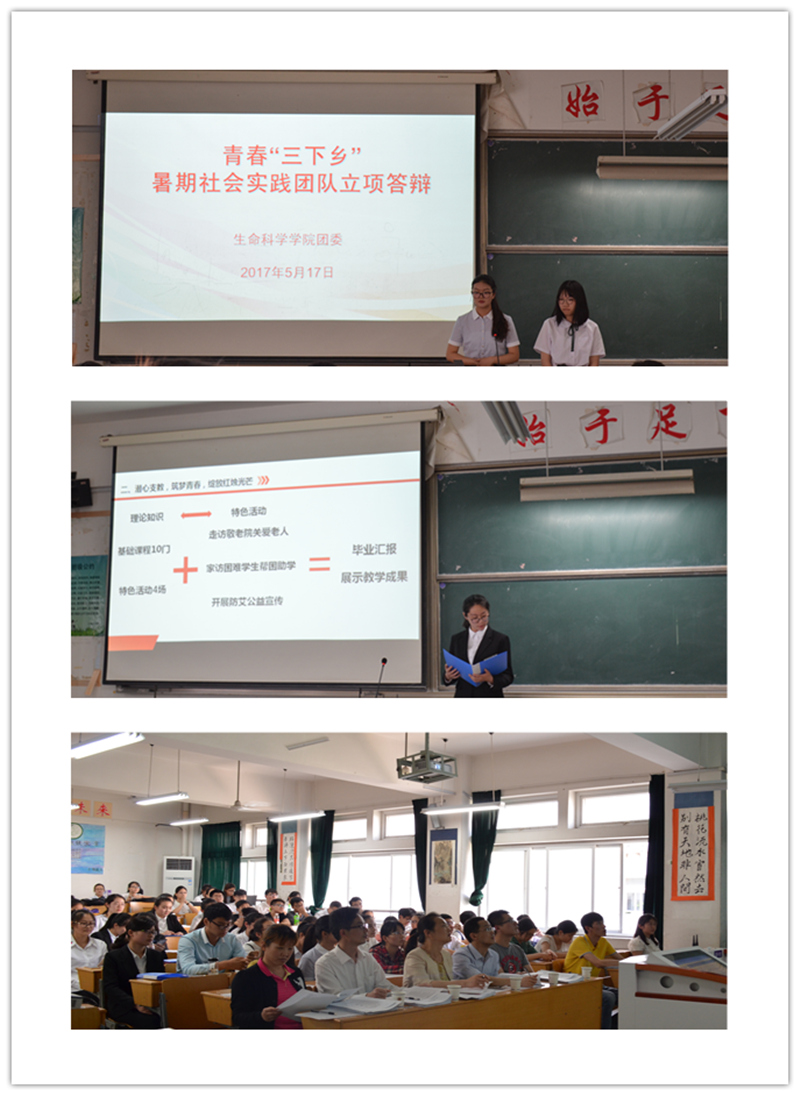 5月17日,生科院暑期社会实践立项答辩会如期举行。4位专业负责人老师、2位公司团委老师出席并担任评委。公司共有32支团队参加立项答辩。各团队利用PPT形式围绕基本概况、实践准备、活动组织、经费预算和预期成果等五个方面进行了各具特色的汇报。实践主题涉及“专业技能磨炼”、“志愿服务下乡”、“热点问题调研”等多个方面。