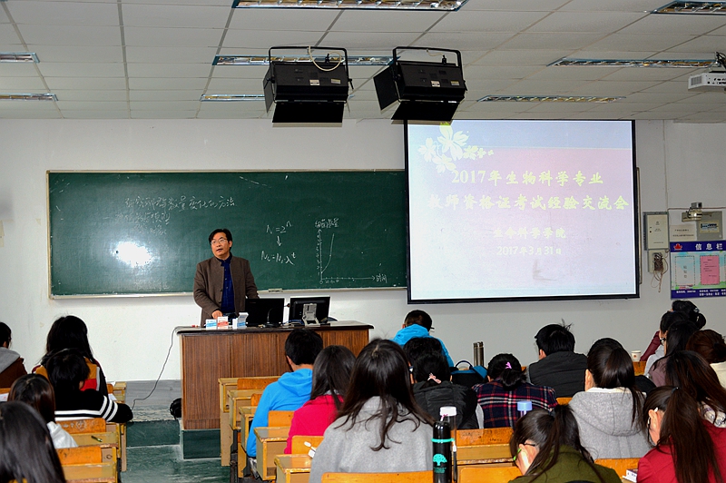 本网讯(生科院 赵喆)接地气,经验交流促进步;求务实,有效指导求发展。3月31日,公司举办了师范生教团队格证考试经验分享交流会。生物科学专业负责人陈明林,课程教学论教师韩菲,院团委书记赵喆及2014级生物科学专业全体学子参加了本次活动。活动由赵喆主持。