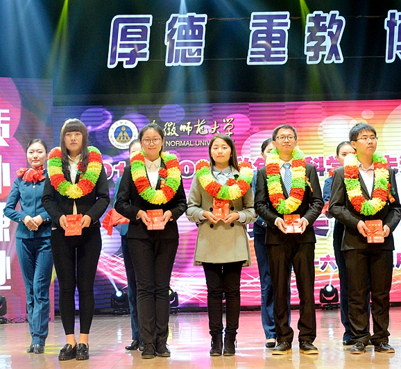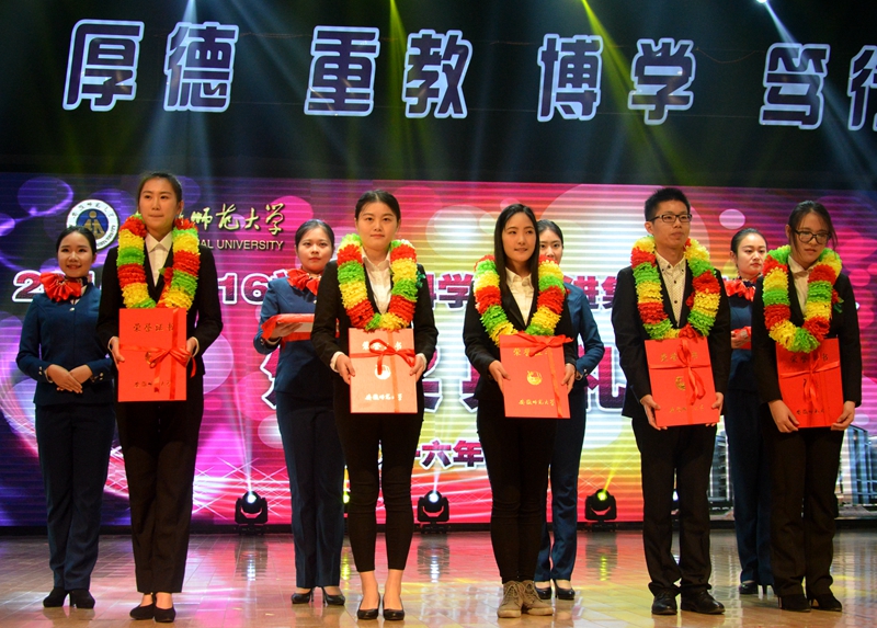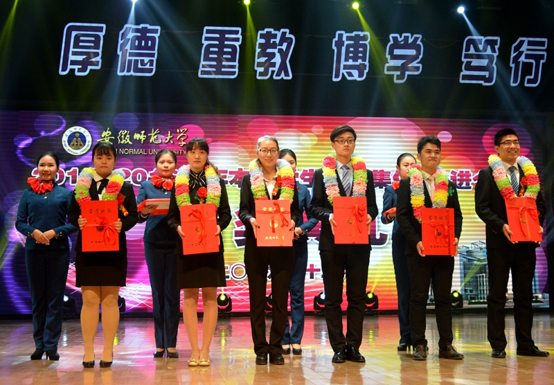 典礼激发了公司员工先进集体、先进个人的荣誉感和自信心、自豪感,激发了全院员工努力学习、奋力拼搏、励志成长的责任心、成才志和报国情。多年来,生科学子以优异的成绩连续在公司先进集体、先进个人年度表彰中获得骄人荣耀,其中,2012—2013学年获9批次表彰(11批次颁奖),2013—2014学年获9批次表彰(9批次颁奖),2014—2015学年获9批次表彰(10批次颁奖)。可喜的是,公司学子“全国十佳老员工提名奖”和“中国老员工自强之星提名奖” 获得者,“师大骄子”十佳老员工、校第五届老员工自强之星朱承节应邀作为嘉宾在颁奖典礼上宣读获奖名单。2016年,公司以总分第一的成绩获公司“就业工作先进公司标兵”荣誉,经理吴孝兵代表获奖单位在颁奖典礼上发言。