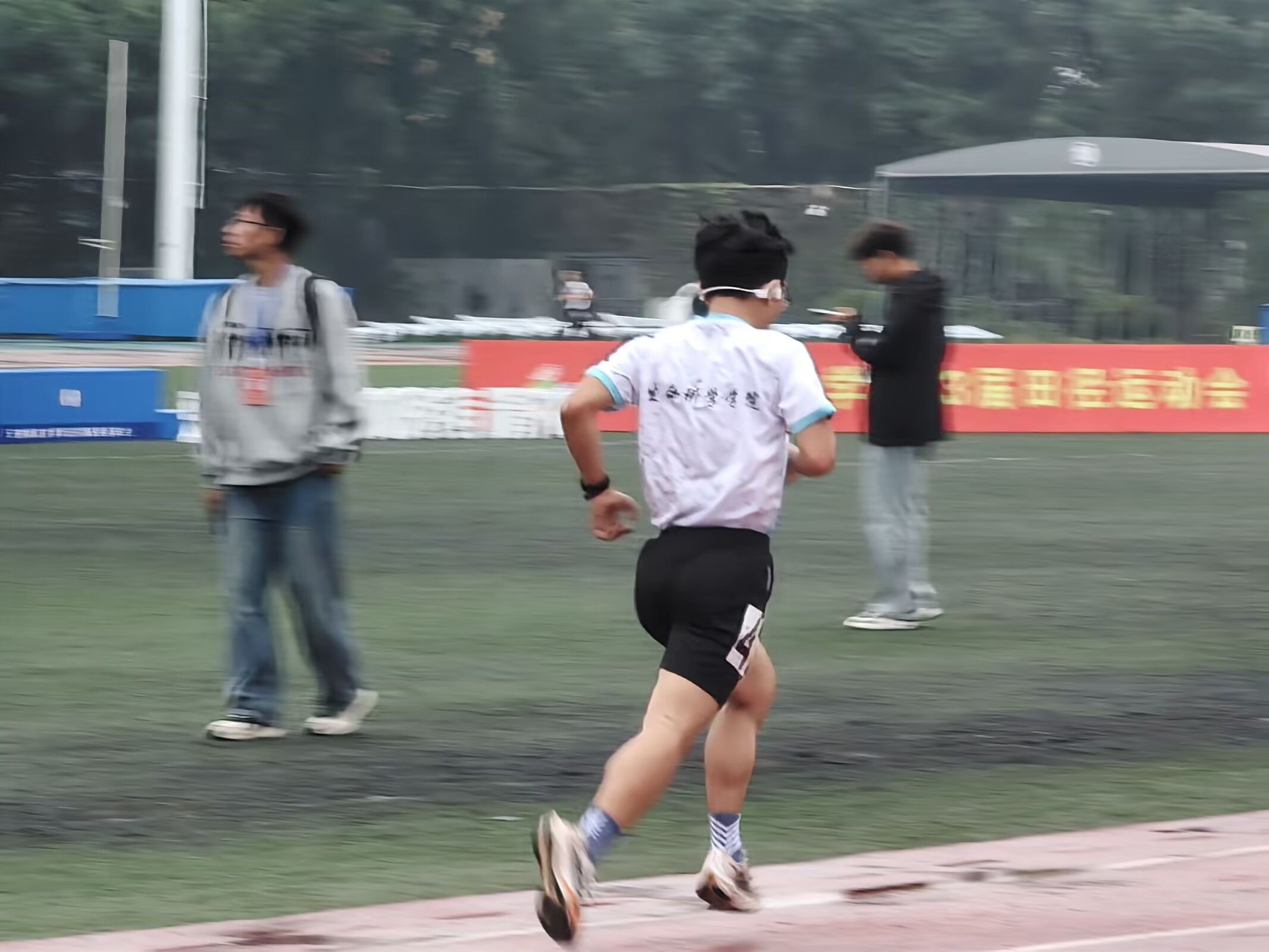 图为男子甲组5000米决赛王帅同学跑步风姿
