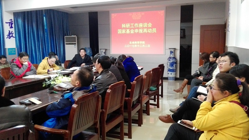 本网讯 ( 张文君)12月2日,为进一步推进2017年国家基金项目申报工作,生科院组织召开了教师科研工作座谈会,全院近50位教师参会。