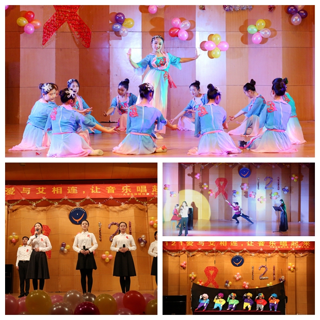 晚会“爱与艾相连”主题鲜明,精心设计的节目内容深刻、形式多彩,现场微信互动、气氛热烈。开场舞《街舞》动感的节奏,激情的舞蹈,率先点燃了现场的人气。歌曲《王妃》节奏欢快,热情洋溢。民族舞《傣源》舞姿曼妙,如山涧流水,引领着观众们感受原始自然、山灵水秀的西南风情和人间关爱的美好景象。《歌曲串烧》风格迥异,用悦耳动听的歌声表明老员工的防艾决心,博得现场阵阵掌声。手足舞蹈《小人舞》以新异独特、诙谐幽默的方式,抒发了平凡志愿者坚定防艾的志向。歌曲《亲爱的小孩》温婉柔美,字字句句流落出朋友间浓浓的相亲相爱真情。小品《输血风波》生动地演绎了非法小诊所无视生命、唯利是图、利益熏心的丑恶行为,普及了预防艾滋病的健康知识,发出了人人参与防艾的行动号召。歌伴舞《大鱼》歌声清新悠扬,舞姿惟妙惟肖,得到现场观众的一致好评。话剧表演《只因为爱》感人肺腑,催人泪下,歌颂了因卖血不幸感染艾滋病的母亲对儿女的伟大母爱。诗歌朗诵《让我握住你的手》、舞蹈《爱的陪伴》以爱为桥梁,体现了老员工对艾滋病患者的关心与关爱。最后,手语操《和你一样》呼吁社会各界更多的人能够正确认识艾滋病,了解艾滋病,能够更好地关心与帮助艾滋病患者,整个音乐厅回荡着浓浓的防艾情。