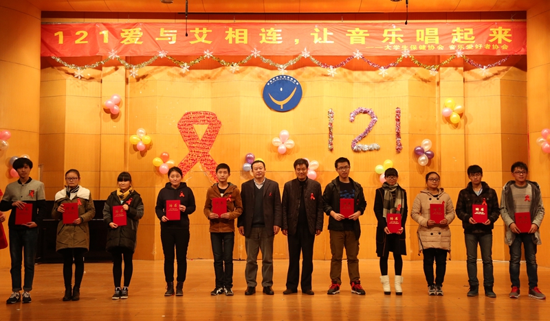 “121爱与艾相连,让音乐唱起来”主题文艺晚会由生科院、音乐公司、校医院联合举办,用老员工喜爱的形式宣传了艾滋病的防范知识,增强了对艾滋病危害的认识和防艾意识,激发了争做防艾志愿宣传的热情,他们纷纷转发防艾晚会微信,参与防艾宣传。芜湖市疾病控制中心主任程周祥对晚会的防艾宣传高度赞誉,并赋诗一首:牙塔乐厅重门开,师生尽系红丝带,笙箫管笛伴琴音,歌舞诗赋共话艾。芜湖市疾病控制中心副主任杨康生,镜湖区卫计委主任陶袁忠、疾病预防控制中心主任杨春霞,生科院、音乐公司、校医院等部门领导及300余名师生观看了晚会。
