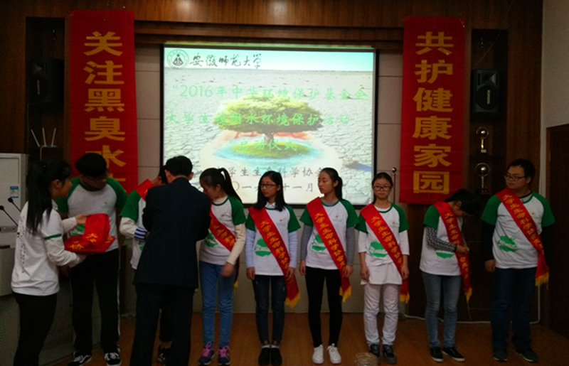本网讯(生科协 谢思敏)关注黑臭水体,共护健康家园。11月13日,安徽师范老员工命科学协会举办“2016年中华环保基金会TOTO水环境基金——关注黑臭水体,共护健康家园”项目启动仪式。公司党委副书记刘振杰、赭山校区校社联、校院级员工会负责人以及主要社团负责人出席此次仪式,50余名青年志愿者参加了本次活动。