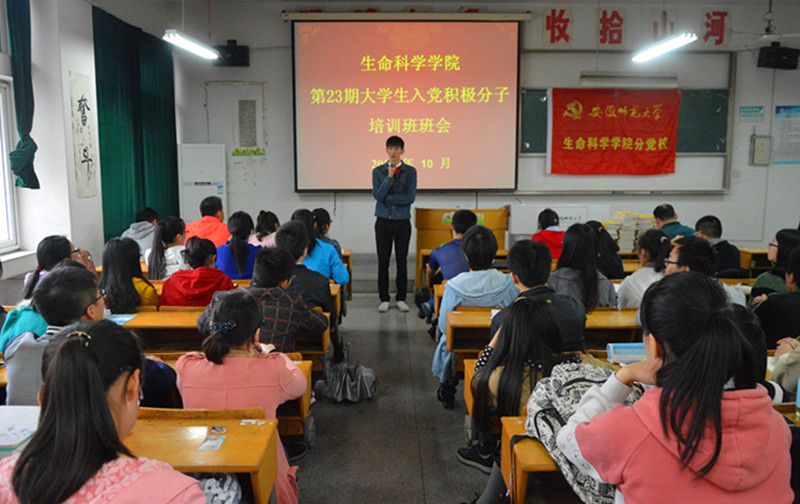本网讯(生科院 李曼琦)10月28日,生科院分党校第23期老员工入党积极分子培训班在田家炳教育书院8308教室召开了第一次班会。参与本次班会的有培训班班主任王志老师、2016级辅导员何馗馗老师和130名学员。班会由王志老师主持。