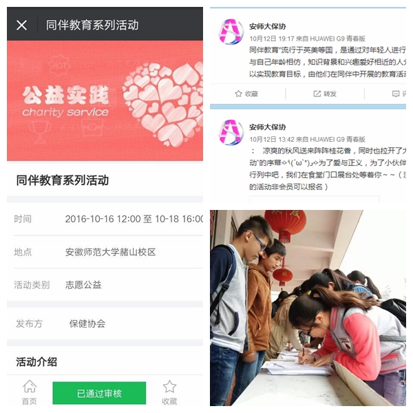 10月初,保健协会通过宣传海报、展板宣传、现场咨询等形式介绍活动内容,普及艾滋病防控知识。同时利用微信、微博、QQ等新媒体平台发布活动信息,并在公司第二课堂信息管理系统开设线上报名通道,扩大防艾宣传覆盖面,提升防艾宣传的实效性。活动受到赭山、花津两个校区近千名同学的广泛关注。