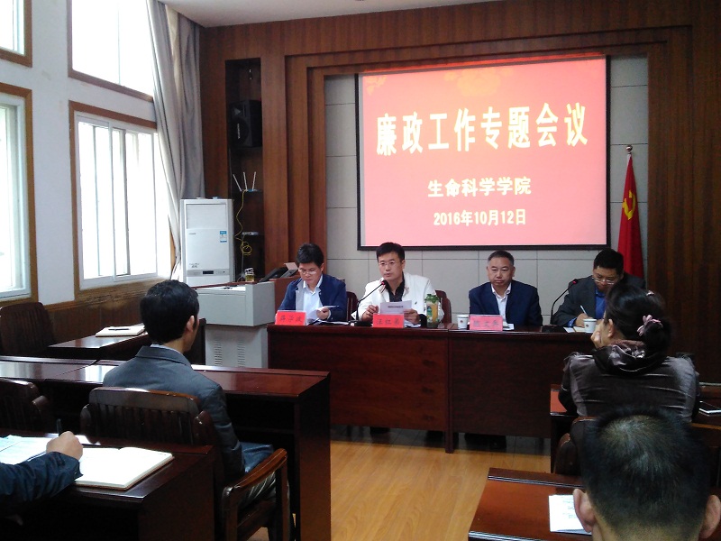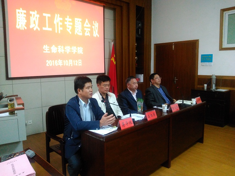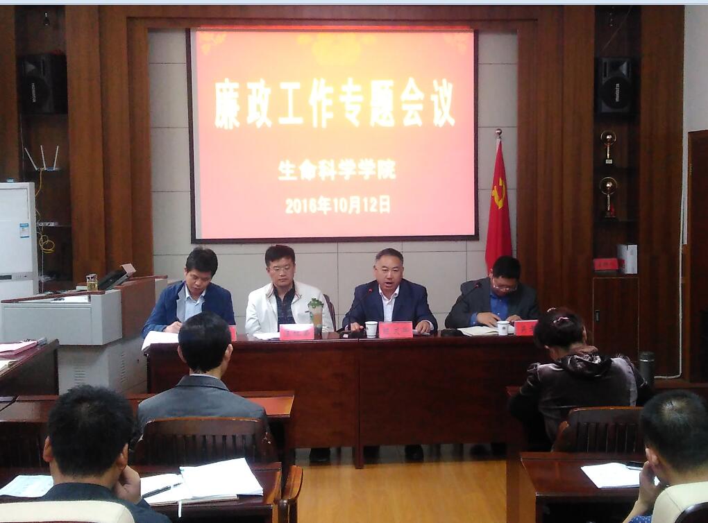 (本网讯 汪倩倩)10月12日,生科院在公司一楼会议室召开廉政工作专题会议暨党风廉政建设责任书签字仪式,校纪委副书记、监察处处长陈文兵,财务处会计核算一科科长汪红弟以及全院全体教职工参加了会议,会议由经理吴孝兵教授主持。