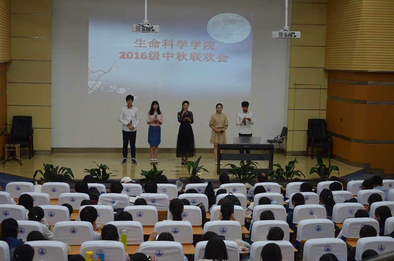 (文/何馗馗 訾梦婷)9月15日下午,生科院2016级新生在科技礼堂举行师生联欢会,辅导员何馗馗、訾梦婷和全体新生以丰富多彩的节目,载歌载舞、欢声笑语喜迎中秋佳节,欢度进入大学的第一个传统节日。