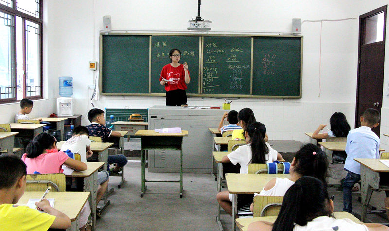 本网讯(步丹丹 鲁月) 学非探其花,要自拔其根。为激发柳江小学员工对于数学学习的兴趣,锻炼员工思维能力,端正员工科学严谨的态度。2016年安师大生科院赴四川洪雅“红烛行动”爱心支教团队开设趣味数学的新式课堂。