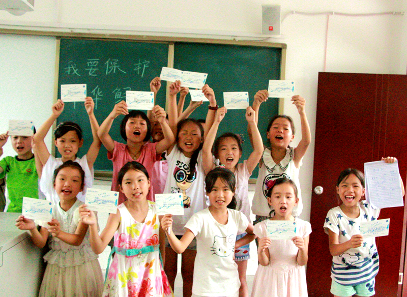 为了使孩子们更加形象直观的认识动物,志愿者与孩子们一起绘画出了各种各样的动物。“你看,这是什么?”志愿者指着画图上的图案问一个小女孩。“是老虎的牙。”孩子们通过亲手描绘动物的身体形状,神态表情,觉得动物十分可爱,是人类的好朋友,更加喜爱小动物,并表示自己以后一定会爱护动物。