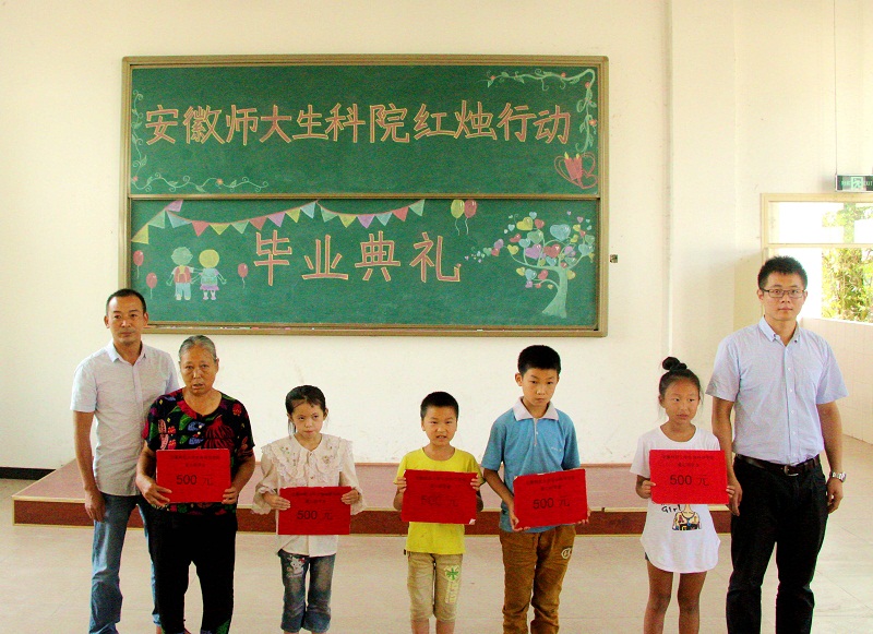 典礼期间,鲜文与赵喆共同将由全院师生爱心汇聚而来的生科院爱心助学金5000元捐赠给了柳江小学10名贫困员工,并勉励他们好好学习,长大以后感恩社会、回报社会。