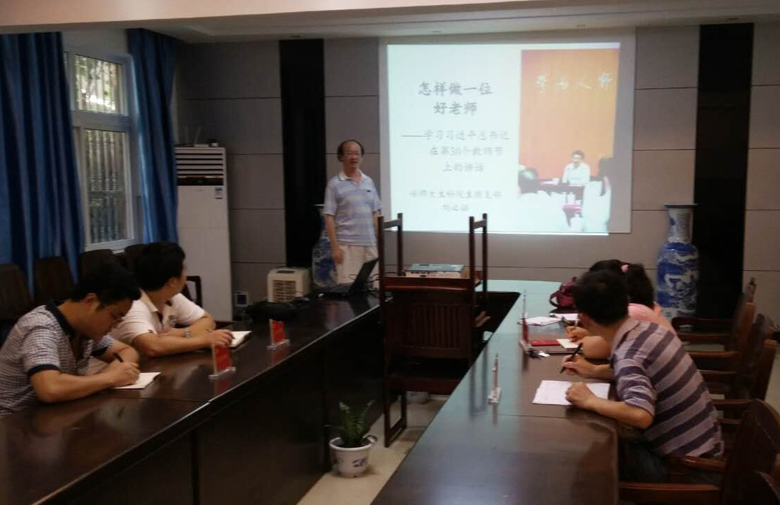 首先,刘必融同志为支部成员讲了一堂以“怎样做一位好老师”为主题的生动党课。以习近平总书记在第三十个教师节北师大座谈讲话为基础,着重介绍对教师“仁爱之心”的理解。强调教师在与员工相处的过程中要做到“宽严相济”,一名好教师要做到忠于职守,多与员工交流探讨,不对员工做苛刻要求,包容员工等。在讲课过程中,刘老师结合自身工作,分享在实际教学中处理问题的方式方法,从理论和实际两个方面阐释了“怎样做一位好老师”这一主题。