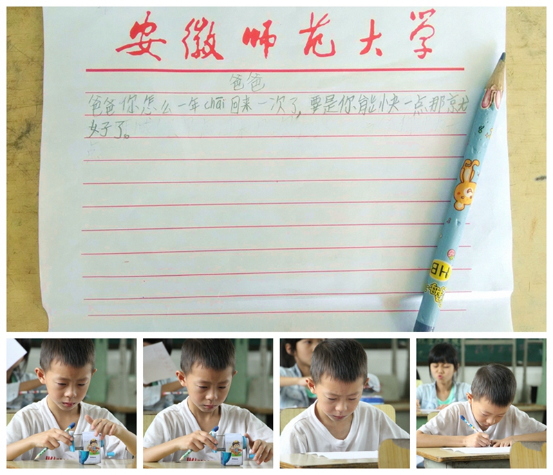 志愿者以爸爸妈妈的身份述说了对孩子们的期望和关心,并引导孩子们用书信的方式表达自己对亲人的爱及思念之情。“爸爸你在外面苦不苦,如果外面苦你就快回来吧”“爸爸你怎么一年chai回来一次了,要是你能快一点就好了”“爸爸妈妈你们快回来吧,我不想一个人躲在屋子后面哭”小小的手紧握小小的铅笔,一字一句写下深深的思念,每一句稚嫩的话语、每一滴晶莹的泪水都充满着对父母的感恩。看到此情此景,志愿者也终于忍不住,大颗大颗地落下了眼泪。