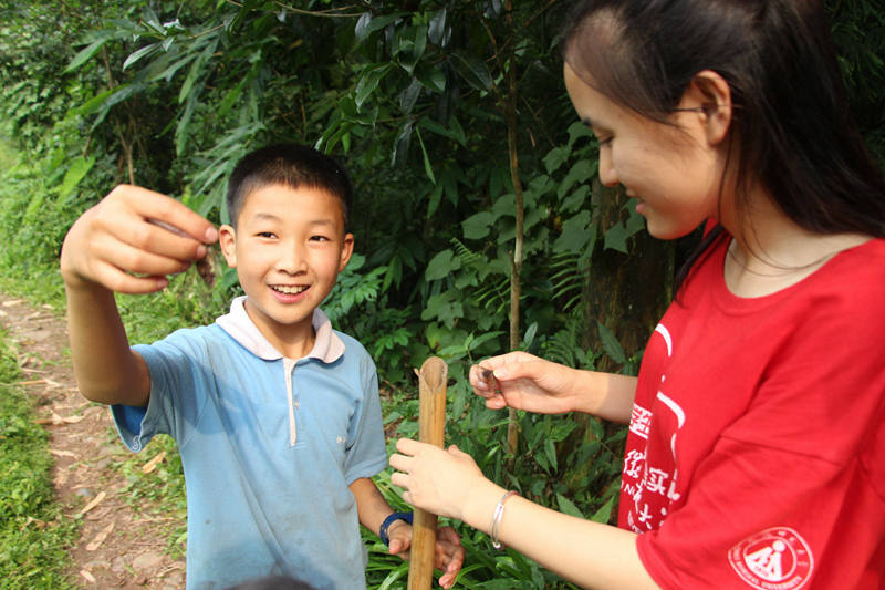 在孩子们的带领下,志愿者们跟着他们学习捕蝉,认识植物,捉笋子虫……孩子们说,笋子虫是一种可以食用的虫,他们每天山上捉虫子,周末拿到集市上去卖,这便是他们零花钱的全部来源。志愿者们自告奋勇地上山帮助孩子们捉虫,结果徒劳无功,却被孩子们熟练的动作所折服。“生活不易当自惜”一位志愿者感慨地说道。
