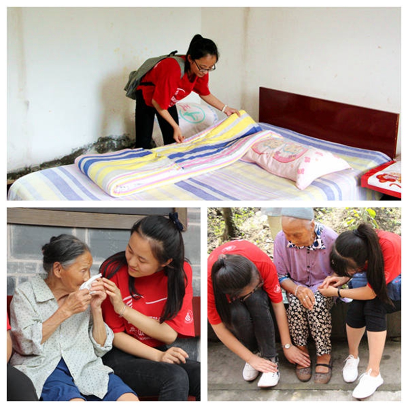 在健康讲座结束后,志愿者们按照分组,依次陪伴老人进入寝室,开始帮助老人们收拾房间、整理内务、唠嗑谈心。交谈中,虽然因地域关系出现一点沟通问题,但是老人们渴望关怀的眼神让志愿者们心疼不已。“奶奶,您想家吗?”话音刚落,一直聊得很开心的奶奶突然安静了,只是抿着嘴淡淡的微笑,不再说话了。据了解,这些老人大多都是孤寡老人,他们想要的不多,只是渴望能够多一些陪伴,一丝呵护,一片关怀。