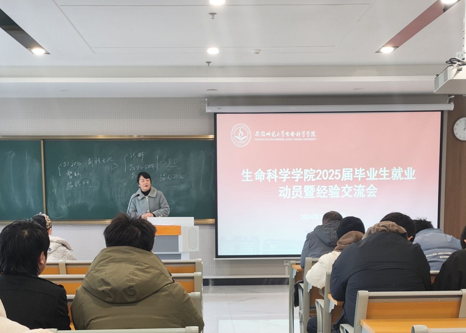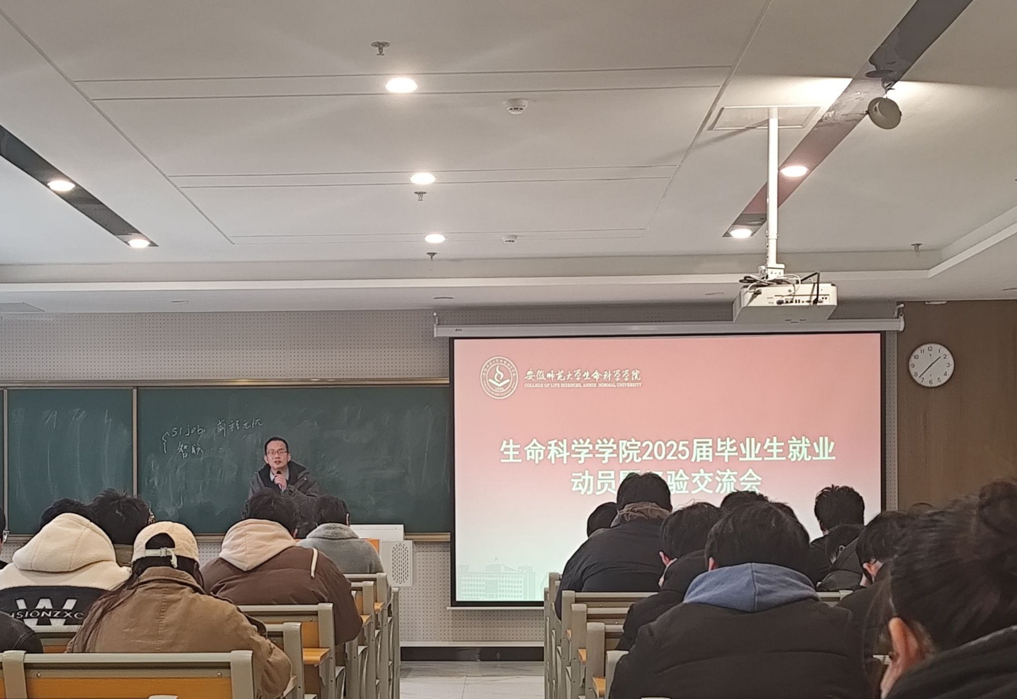生科院生物技术专业于12月25日在清源楼C307教室组织召开2025届毕业生就业动员会,专业负责人刘爱民、王旭、程伟、杜冬生,辅导员赵航主持会议。