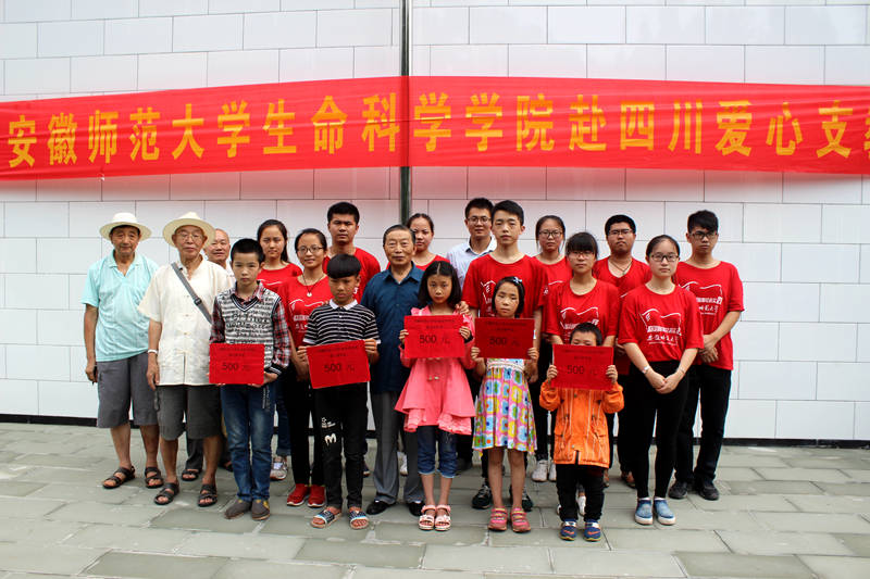 在全体参与人员的见证下,周明弟和赵喆共同将安师大全校师生募得的3000元善款捐助给了桃源小学五年级熊官祥等6名贫困员工。仪式后,桃源乡乡长谢烨作了总结讲话。他代表桃源乡人民政府感谢了安师大生科院的全体师生及社会各界对桃源乡贫困孩子的关心与帮助,他希望受助的孩子们能够将感激之情化为成才之志,努力奋斗,学有所成,将来用切实的行动去感恩他人、回馈社会。