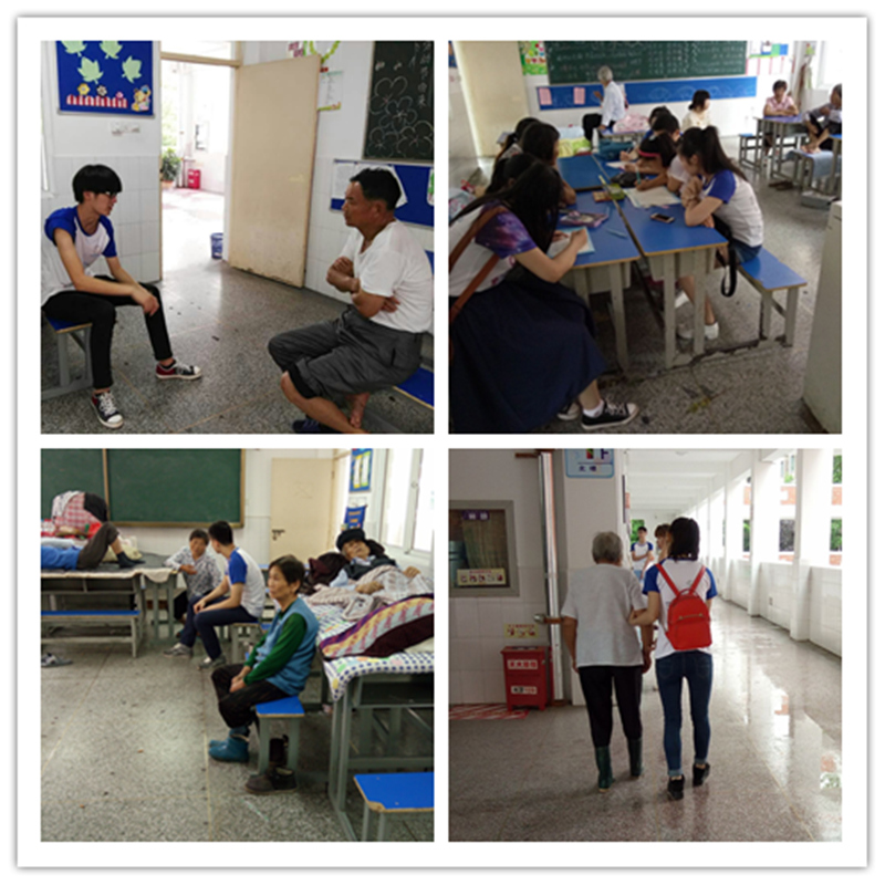 安师大生科院赴芜湖关爱弱势群体志愿服务团队由m88官网和化学与材料化学公司共计15名同学共同组成,原计划在弘德社区服务中心开展相关实践活动。因汛情紧张,团队成员决定加入志愿服务队伍,开展后勤服务工作。在北塘小学安置点搬运后勤物资;配合工作人员安置灾民;配合医生对受伤灾民进行治疗;给受灾员工辅导功课。团队成员陪伴老人们聊天,辅导孩子们功课,用陪伴为受灾群众带去精神上的慰藉,用爱化作坚实的臂膀。