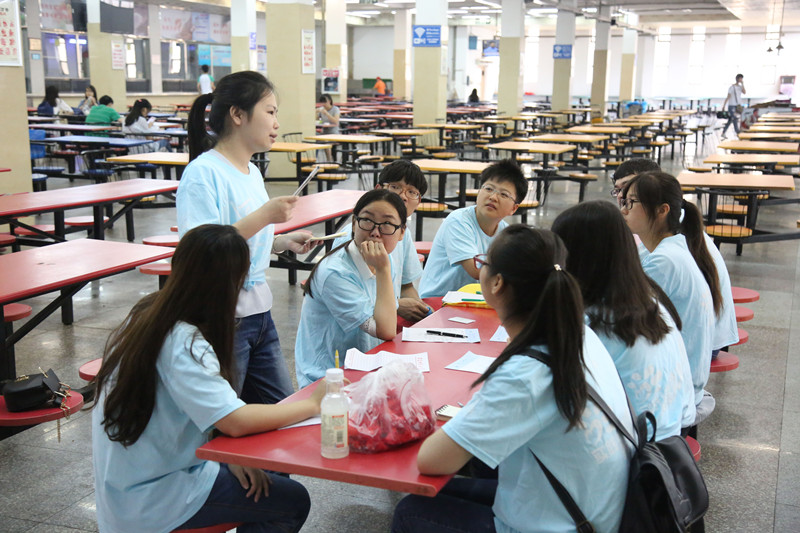 暴雨接连几日,但并不能浇灭同学们积极参与活动的热情。7月4日,安师大赴芜湖防艾宣教活动正式开启,为宣教活动进行准备。上午8点,所有队员在食堂二楼召开了本团队的第一次会议。会议上,队员们互相沟通了解。之后,队长张颖根据每位成员的特长对工作任务进行了合理分配,并着重讨论了活动进行的相关事项。她指出,此次活动任务艰巨,意义重大,希望每位成员都要认真对待,从一而终。会议结束后,团队成员兵分几路,完成了宣传册、调查表的制作及打印以及相关物品的采购等活动前期准备工作。下午2:30,团队成员又齐聚校医院。在校医院老师的带领下,进行了第一次专业培训——自救急救培训。在培训中,老师首先发放试卷,调查团队人员对CPR(心肺复苏)知识的了解情况,随后,老师结合教学PPT、专业视频详细介绍了CPR的具体操作流程。最后,在老师的示范和指导下,队员们模拟真实场景,依次在仿真人模上进行心肺复苏的训练。