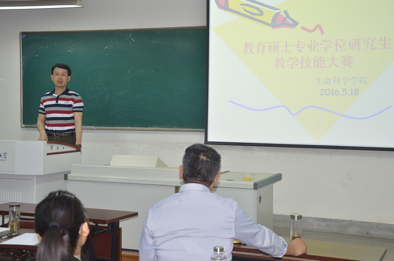 在比赛将要结束的时候,陈明林教授和鲁亚平教授与大家交流心得。陈明林教授主要围绕如何能够在教学技能大赛中更好地展示自己才能方面着手与大家交流心得。首先,作为一名教师应该具有随机应变的能力,要能够很好的处理课堂中可能出现的各种棘手的问题;其次,作为一名研究生,经历了大学本科四年的学习和锻炼,我们应该具有做一份优秀PPT的能力;再次,我们在课堂上对员工进行提问的语气要随和,不能指责员工;最后,我们在答辩的时候,要与评委积极互动,要能够对自己抛出的观点自圆其说。鲁亚平教授就本次大赛中选手存在的主要问题及建议发表了自己的观点。作为一名教育硕士研究生,应该加强学习,加强锻炼,争取早日成为一名优秀的生物学教师。
