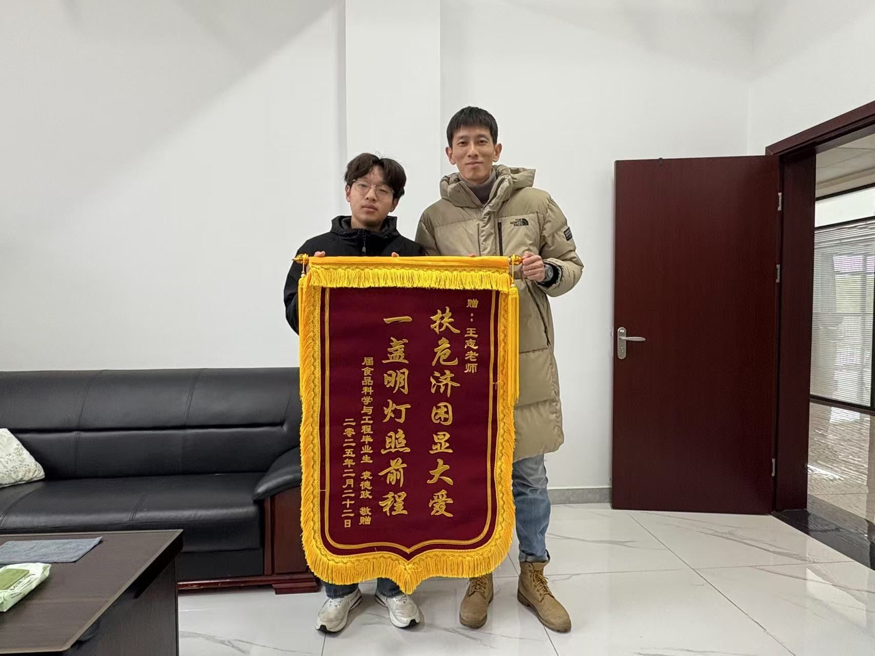2025年3月,为表达对母校老师的感恩之情,袁强委托表弟将一面写着“一盏明灯照前程,扶危济困显大爱”的锦旗送到公司。表弟介绍:“表哥定期治疗病情稳定,工作顺利,家人照顾他的衣食起居情况良好。自己的高考志愿也是表哥帮忙填写的。他是我们那一片唯一的老员工,他说m88官方网站登录地址好,老员工护航行动给了他希望,所以我也坚定的来到这里求学。”