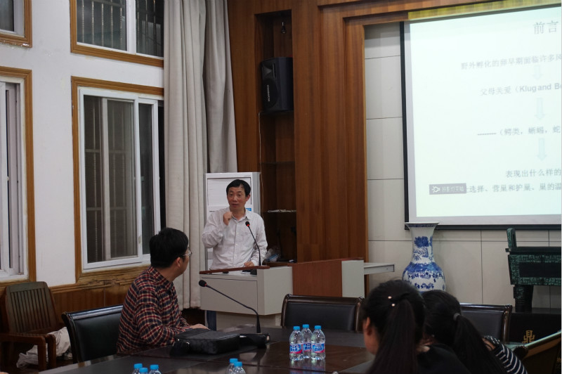 张方副教授的报告从为什么会产生扬子鳄的护巢行为出发,介绍了扬子鳄的护巢行为对其繁殖收益的影响,并通过扎实的数据得出扬子鳄护巢行为差异与繁殖期望成正比这一结论,张方老师用缜密的逻辑、细致的讲解,从问题提出出发,一步步引导同学们去思考问题。启发大家在学习科学知识的同时,也培养大家如何用科学思维来看待生活中的问题。在报告过程中,同学们积极踊跃发言,与张方老师相互交流,学习知识。现场氛围热烈活跃,同学们纷纷表示感谢张方老师的细心教导,同时也促进了他们对生物学的浓厚兴趣。希望今后可以多多参加此类活动。
