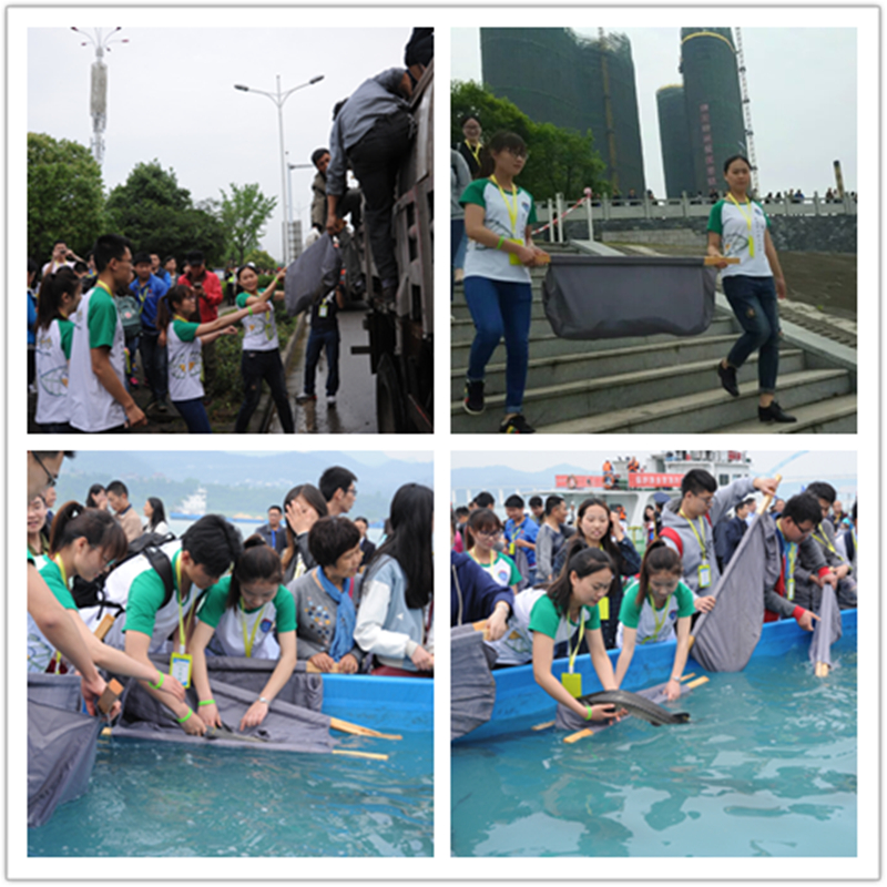 本网讯(生科院 鲁月 章晋秀)我与中华鲟,共赋长江美。老员工生命科学协会于4月份再次成功申报由大自然保护协会(TNC)、世界自然基金会(WFF)联合发起的发起的“护航中华鲟”项目。4月24日上午,生科协作为全国仅有的六支沿江高校志愿者队伍之一,在协会会长章晋秀的带领下,前往湖北宜昌参加了由中国三峡集团、宜昌市人民政府主办的2016年长江三峡中华鲟放流活动。