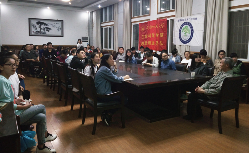 本网讯(生科院志愿者服务队 程鹏)4月23日,生科院志愿者服务队应“皖南青年环境行动网络”邀请,开展“绿色大讲堂”环保宣讲活动。本次宣讲主题为《常见花卉盆景的栽培管理》,并有幸邀请到公司退休教师邵建章作为主讲人。出席本次活动的还有各高校环保组织的负责人。