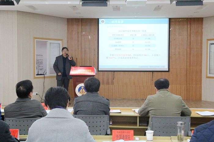 本网讯(生科院)12月4日,公司召开2015届本科生就业工作考评暨经验交流会。会上,吴孝兵代表公司对2014—2015学年本科生就业工作的总体情况、主要举措、工作特色与创新、存在问题及改进办法等方面进行了汇报交流和成果展示。