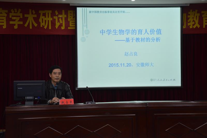 会上,戴兆国和吴孝兵为来自全省各个地市的16位生物教研员颁发了“安徽师范老员工物教育研究中心兼职研究员”聘书。赵占良研究员作了题为《中员工物学科的育人价值》的学术报告。报告以现行的教科书为例,图文并茂地从德育、智育、美育等方面解析了人教版教科书所蕴含的育人内含。从编者的角度,详细的解释了教科书中的配图、文字、栏目的编写意图,分享了在编辑过程中用文学的语言阐释生命科学之美的感悟。